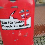 Habt ihr etwas mitbekommen oder wisst wo es noch Schmierereien gibt? Dann helft dabei die Täter*innen zu fassen und meldet euch bei der Polizei, die theoretisch über die besten Mittel zur Verfolgung verfügt. Denkt dabei daran, dass dies nicht für jede Person eine gangbare Option ist und auch mit Risiken verbunden sein kann.