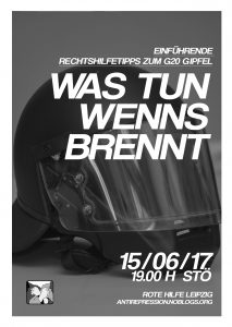 19:00 Uhr Infoveranstaltung zum Verhalten auf Aktionen und Demos während des G20-Gipfels in Hamburg im Anna&Arthur