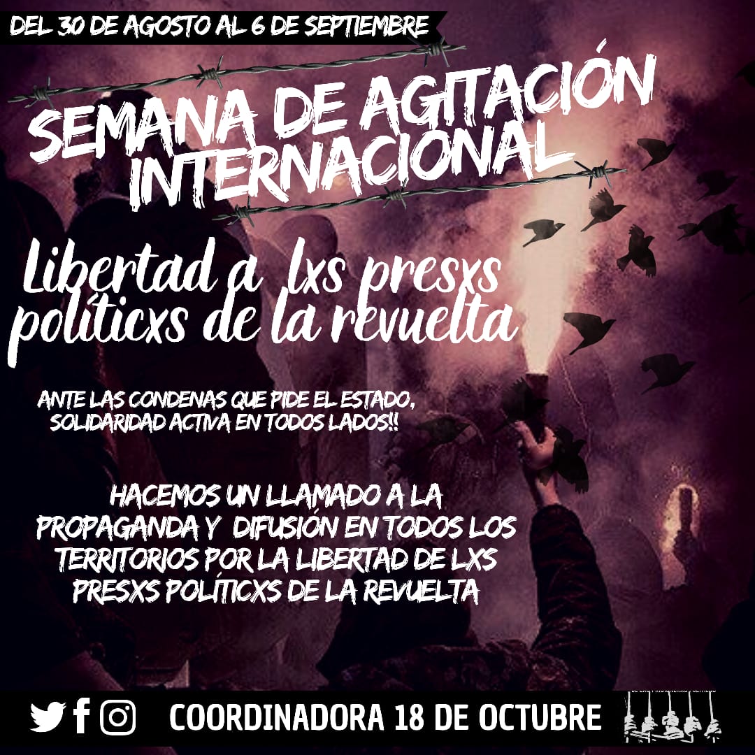 Chile-Internationale Woche der Agitation und Solidarität mit den Gefangenen der Revolte. Vom 30. September bis zum 6. August.