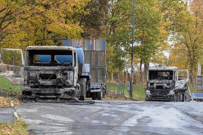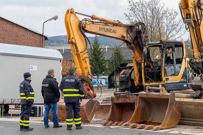 Deshalb haben wir in der Nacht zum 05. November zweimal zugeschlagen: Einmal in Rodewisch beim Straßenbauunternehmen VSTR GmbH und bei der Hentschke Bau GmbH in Bautzen. An beiden Orten haben wir schwere Baugeräte in Brand gesetzt und zwei Lastwagen, zwei Bagger, einen Kleintransporter und eine Sattelzugmaschine den Flammen übergeben. Der entstandene Sachschaden liegt im sechsstelligen Bereich. Beide Firmen haben Aufträge zum Bau der neuen JVA in Zwickau-Marienthal angenommen und ziehen dort fleißig die neuen Knastmauern hoch. Nach dem erfolgreichen Angriff auf die Baustelle im August 2019, haben wir uns nun dieser Aktion angeschlossen. Mehr Hintergründe zu dem Bau der JVA und der Firma Hentschke Bau haben die Gefährt*innen, die sich „Autonomes Kommando Thomas Meyer Felk“ nannten im August bereits dargelegt, wir möchten an dieser Stelle auf ihr Cominque verweisen. [1]