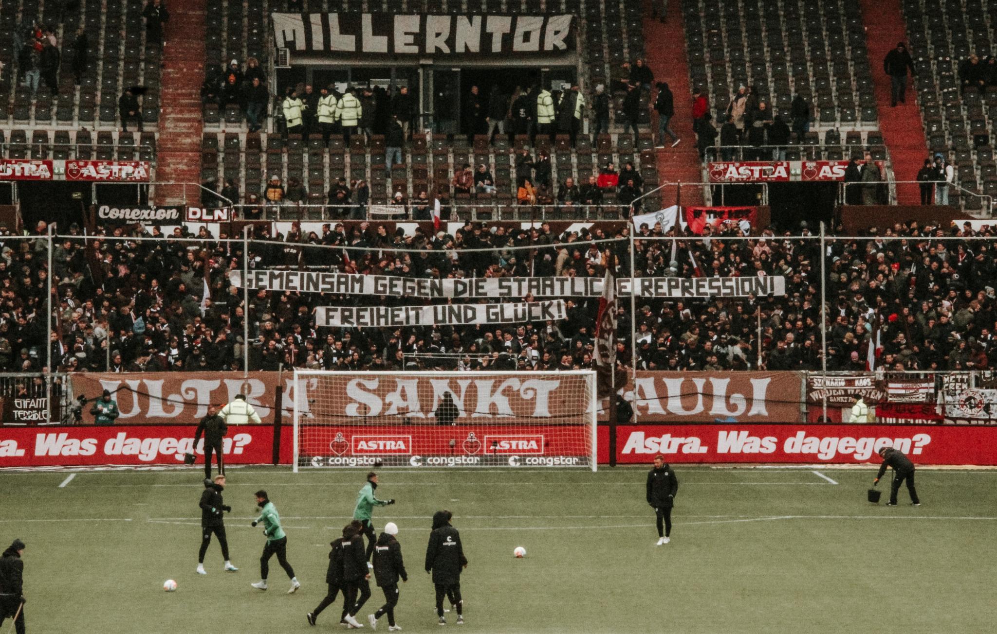 „Moin, wir wollten euch gerne solidarische Grüße aus der Südkurve schicken! Viele Grüße, Ultrà Sankt Pauli“