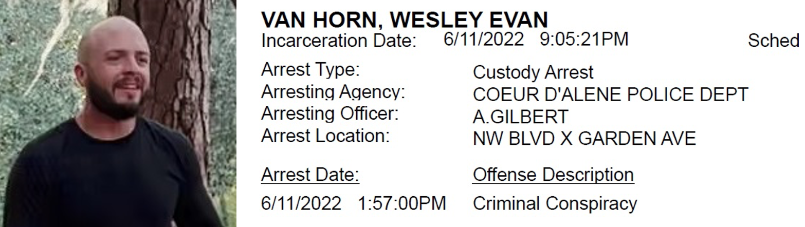 We can now reveal the identity of Patriot Front’s Network Director for “Network VI” (northern Alabama & Georgia, southern Tennessee). Wesley Evan Van Horn of Lexington, Alabama is “Christopher AL” of Patriot Front. He was arrested with 30 other Patriot Front members in Idaho on Saturday, June 11th, 2022.