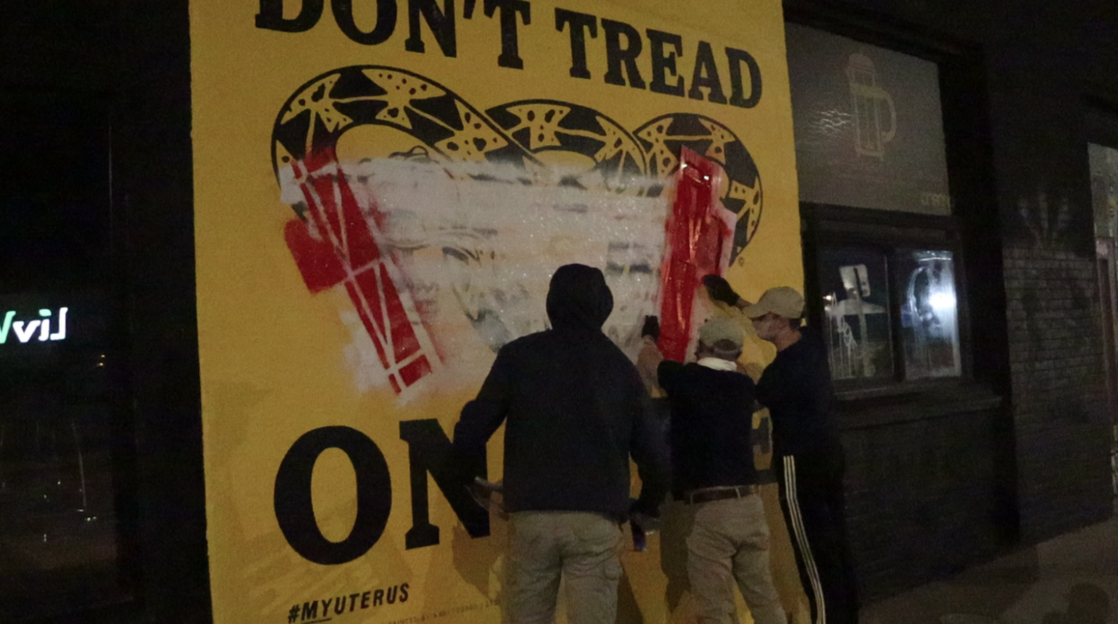 Patriot Front members also regularly vandalize left-wing and progressive artworks. Leaked internal Patriot Front video, published by Unicorn Riot, shows Nathan Brenner and two other Patriot Front members vandalizing a pro-bodily autonomy mural at Crema Coffee House in Denver.