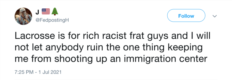 Patryck Durham’s white supremacist rhetoric even more extreme outside of the Patriot Front chat. As Sunlight161 found, Patryck runs a number of pseudo-anonymous Twitter accounts, which he has used to praise Adolf Hitler, the Ku Klux Klan, the Oklahoma City Bombing, and to express his desire to shoot up “an immigration center,” and lynch Black people.