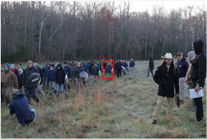 Brian Harwood drilling with other Patriot Front members in preparation for Patriot Front’s December 4th, 2021 march in Washington DC. Clustered around Harwood (outlined in red) are several other NW7 members who made up Harwood’s shield team.