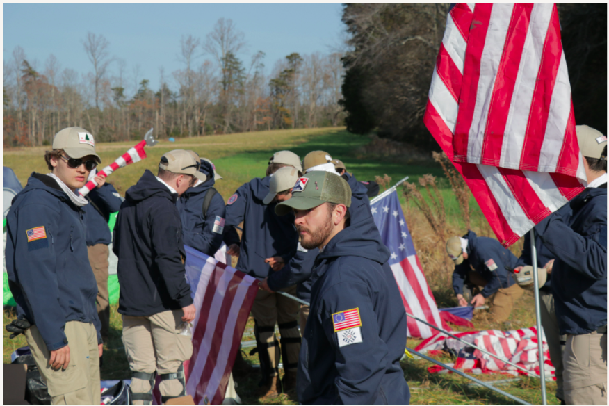 Brian Harwood (center, w/beard) at the Virginia training grounds for Patriot Front’s December 4th march in Washington DC.