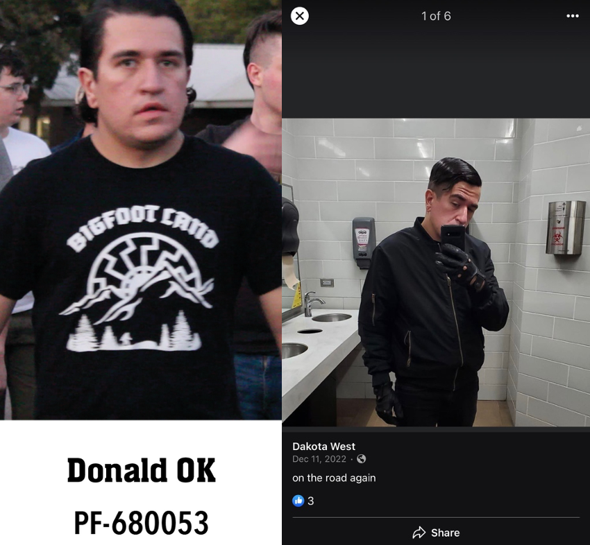 We identified Dakota James West after we identified another Tulsa-area Patriot Front member, Clinton William Hudson, in March 2022. Dakota is very active in Patriot Front activities and still is a threat to the community. He may also go by Dakota James Pomeroy. We also have reason to believe that he may now reside in the greater New Orleans/Slidell Louisiana area, more precisely Picayune, Mississippi.