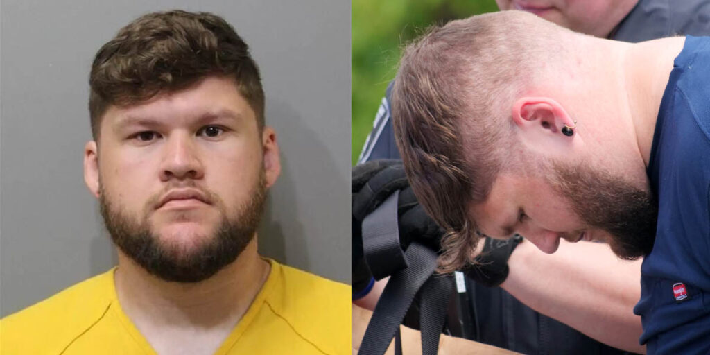 Mishael Daniel Buster, 23, of Watauga TX was arrested alongside 30 other members of Patriot Front while attempting to disrupt a Pride event in Coeur d’Alene, Idaho.