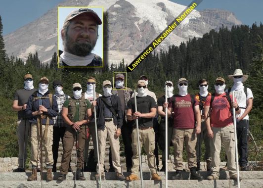Lawrence Alexander Norman of Prospect, Oregon is a member of of the white nationalist organization Patriot Front. Norman has been photographed attending and participating in the group’s PNW meetings and trainings. Members of Patriot Front are assigned a two part call-sign with a generic name and their state. Lawrence Norman is known to the group as Frederick OR.