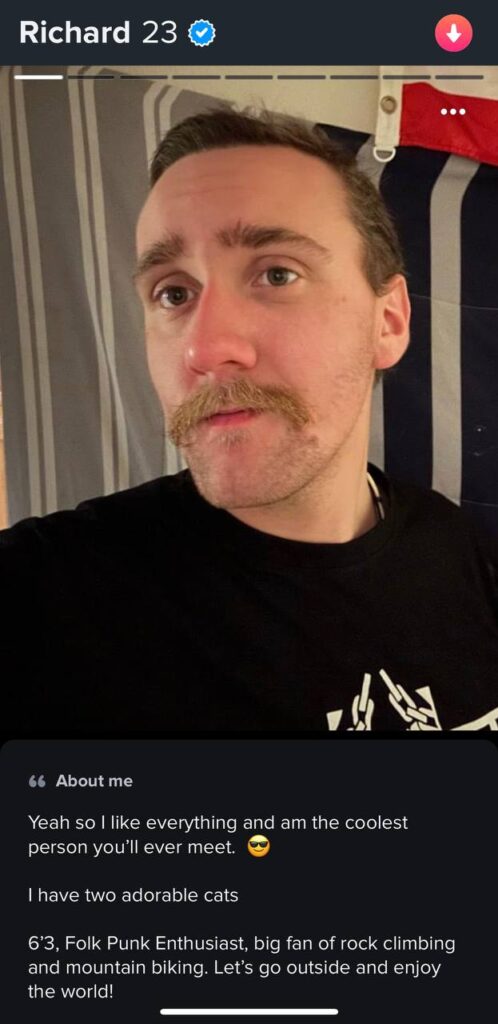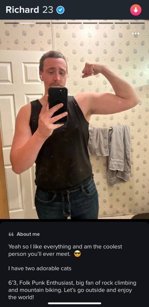 Richard James Flannery has been seen on the dating app Tinder. In one photo, Flannery is shown holding hundreds of flyers in baggies while wearing a skull mask. This is a tactic often associated with White Lives Matter or the Goyim Defense League.