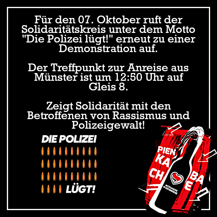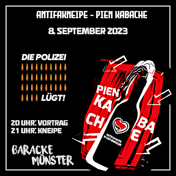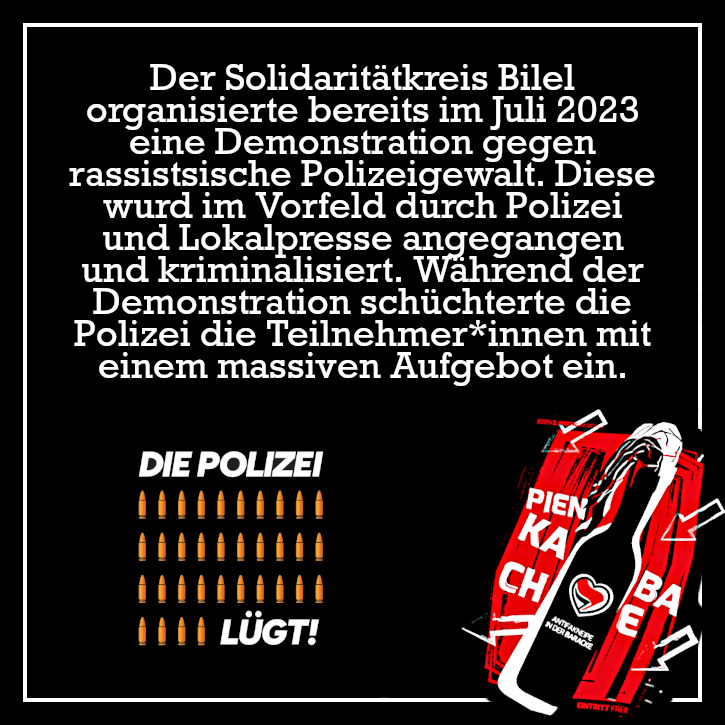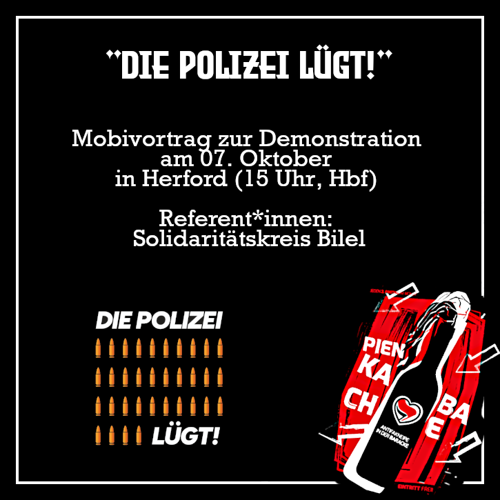 Wir haben am 08. September um 20 Uhr Referent*innen des Solidaritätkreises Bilel in die Baracke eingeladen, um zur Situation in Herford und zur geplanten Demonstration am 07. Oktober 2023 (15 Uhr, Hauptbahnhof Herford) unter dem Motto „Die Polizei lügt!“ zu berichten.