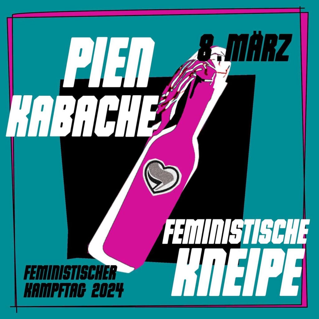 Der 8. März steht vor der Tür. Zu diesem Anlass haben wir euch etwas vorbereitet, das Münster so noch nie gesehen hat: Die Kneipe deluxe: FemKneipe und PienKabache an einem Abend und gemeinsam! Am feministischen Kampftag wollen wir uns mit euch austauschen, diskutieren, trinken, tanzen und feiern!
