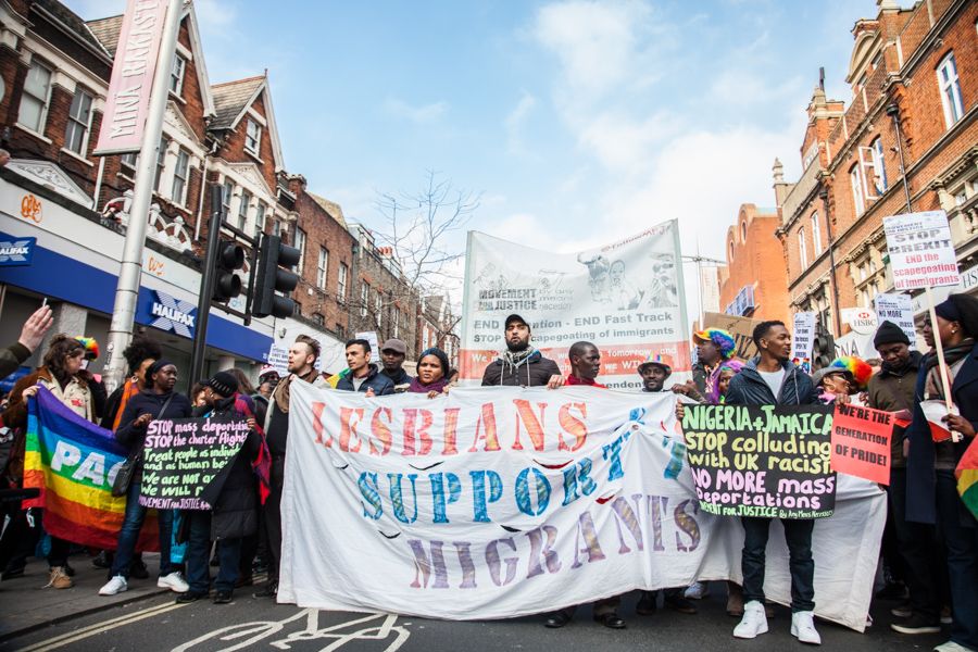 Die Menschen in der LGBTQ+-Gemeinschaft haben seit langem erkannt, dass Kämpfe zwischen verschiedenen Gruppen miteinander verbunden sind, und haben Solidarität zwischen solchen Gruppen geschaffen. Vielleicht hast du durch den Film Pride bereits von den Lesben und Schwulen gehört, die die Bergarbeiter*innen in Grossbritannien unterstützen (Lesbians and Gays support the Miners), oder sogar von der zeitgenössischen Gruppe, die durch sie inspiriert wurde: Lesbians and Gays Support the Migrants (Lesben und Schwule unterstützen die Migrant*innen).