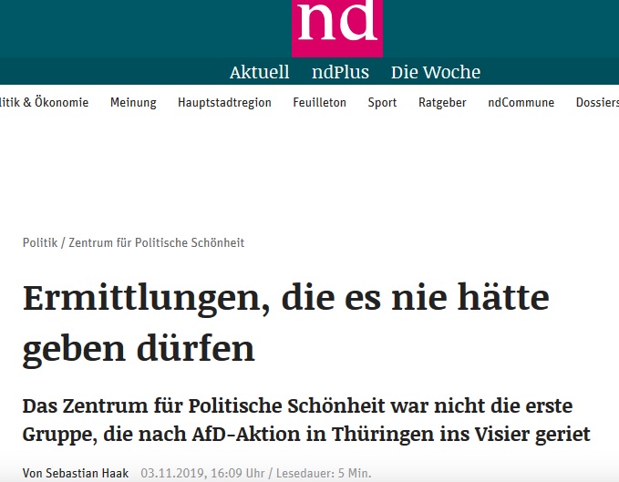 3.11.2019 „Ermittlungen die es nie hätte geben dürfen“ im Neuen Deutschland von Sebastian Hauk: