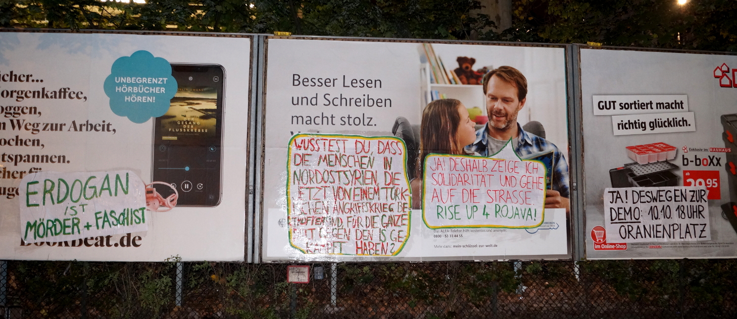 Adbustings gegen türkische Militäroperationen im türkisch-syrischen Grenzgebiet („Rojava“) im Oktober 2019