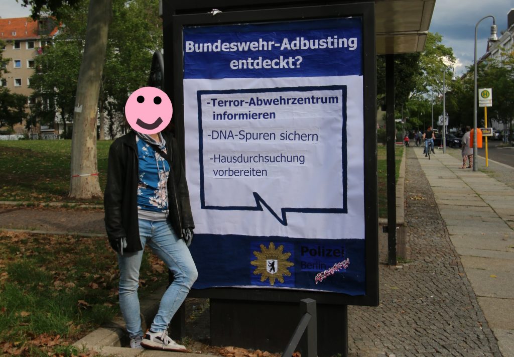 Mit der Aktionsform Adbusting verändern Aktivist*innen Werbeplakate bis zur Kenntlichkeit. Wie jetzt bekannt wurde, führte das LKA Berlin wegen eines verbesserten Werbeplakates der Bundeswehr drei Hausdurchsuchungen durch. Der Grund: Das Poster mache die Bundeswehr lächerlich. Die Frage der Verhältnismäßigkeit ignorierte die Behörde. Dabei sagt sogar der Innensenat, dass das Verbessern von Werbeplakaten „minderschwer“ sei. Zudem stellte das Amtsgericht Tiergarten bereits einen Prozess und mehrere Verfahren wegen Adbusting sang- und klanglos ein. „Antimilitaristische Meinungsäußerungen sind kein Terrorismus“ kommentiert die Abgeordnete Anne Helm (Die Linke): „Da stellt sich die Frage nach der Verhältnismäßigkeit.“