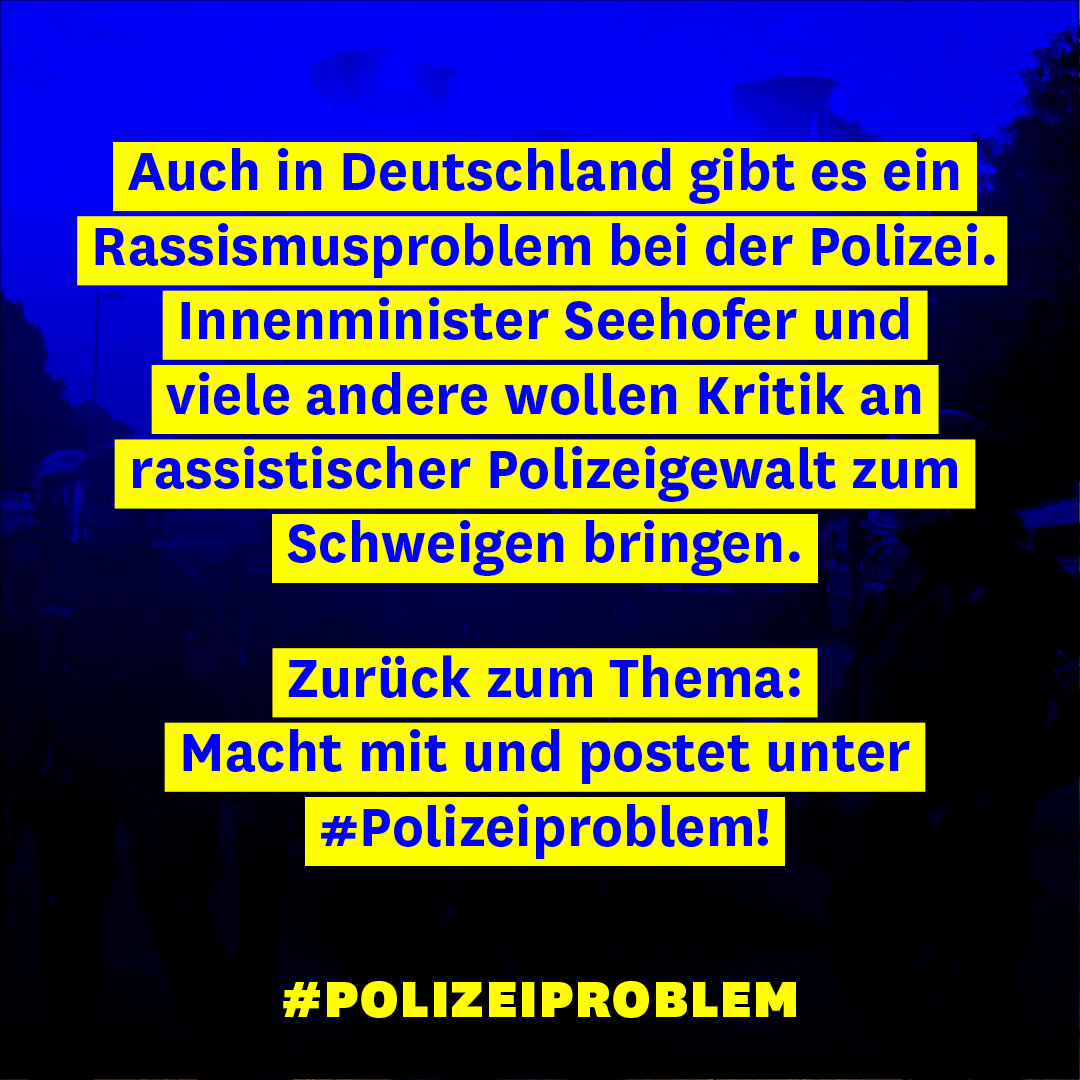 Auch in Deutschland gibt es ein Rassismusproblem bei der Polizei. Innenminister #Seehofer & viele andere wollen Kritik an rassistischer #Polizeigewalt zum Schweigen bringen. Zurück zum Thema: Deutschland hat ein #Polizeiproblem.