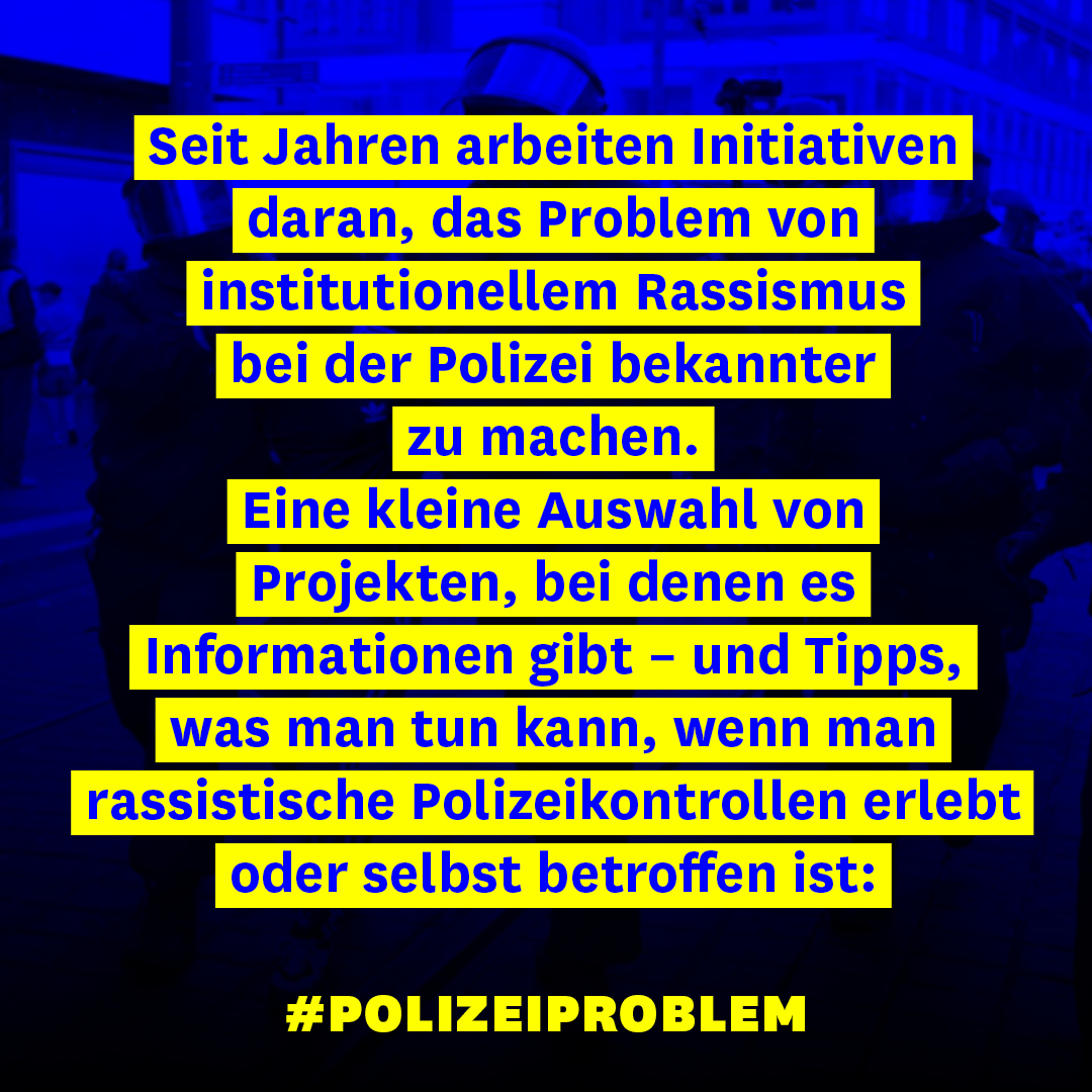 Sucht euch raus, was ihr gebrauchen könnt. Oben findet ihr einzelne Fälle und Infos zu Polizeigewalt, weiter unten Initiativen, die gegen Polizeigewalt arbeiten, ganz unten Slides für eine Instagram Story.