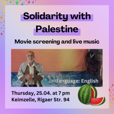 On Thursday we will watch two shorter movies about Palestine. After that there will be live music from one person. Event is in english.