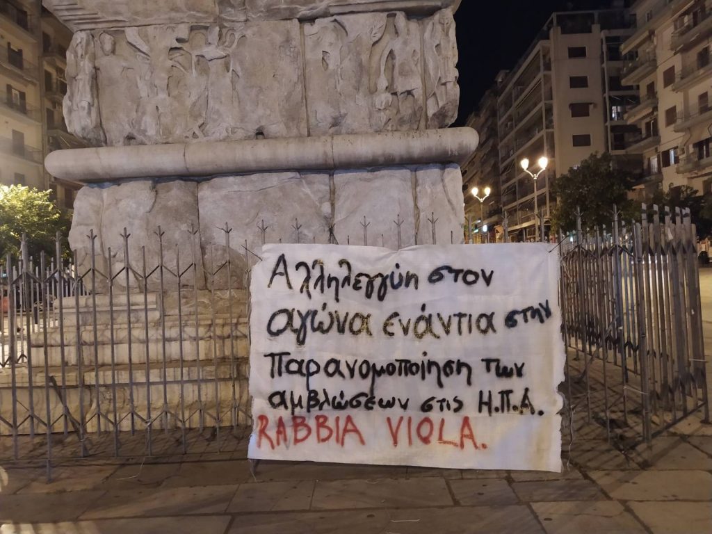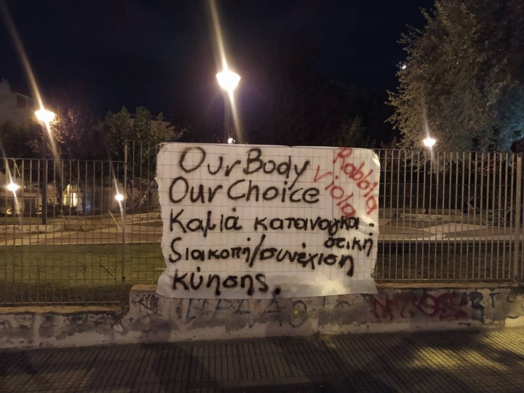 Πανό στο κέντρο της Θεσσαλονίκης ενάντια στις απαγορεύσεις των αμβλώσεων