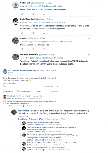 Innerhalb beider Parteien muss man sich aber auch gerade in Hinblick auf das Selbstbild der Mitte zusehends zu der Erkenntnis kommen, dass die eigene Partei diesem Anspruch nicht einmal formal gerecht wird. Die Möglichkeit, dass die AfD eine im bürgerlich-demokratischen Sinne konservative Partei wird, ist seit Jahren vorbei. Mit der Abwahl Luckes war der Weg der Partei entschieden und spätestens nach dem Ausscheiden Petrys 2017 braucht man auch gar keine großen Diskussionen mehr zu führen. Die AfD ist rechtsradikal und wer in ihr Mitglied ist, hat zumindest mit Nazis und Faschos kein Problem. Analog gilt für Personen, die Kooperationen und Koalitionen mit der AfD für möglich halten, dass sie kein Problem haben, mit Faschos und Nazis zu kooperieren und koalieren. Dieser Realität müssen sich alle Mitglieder zwangsläufig stellen.