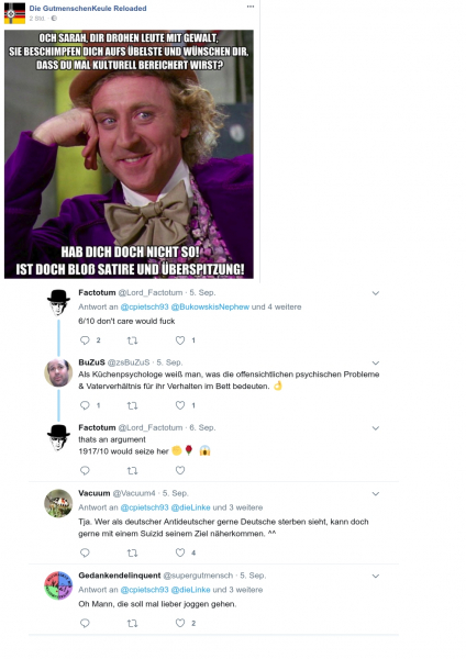 Eine Person, bei der möglicherweise ein Umdenkprozess eingesetzt hat, ist ausgerechnet Horst Seehofer. Ja, es ist sehr spekulativ und weil es sich um den Heimathorst handelt, ist diese Spekulation auch mit höchster Vorsicht zu genießen zu genießen und steht unter jeder Menge Vorbehalt. Dennoch ist das, was man von Seehofer seit dem Anschlag von Halle hört, durchaus ein qualitativer Unterschied zu dem, was man von CSU-Leuten erwarten kann. Gerade dort hat man ja das Hufeisen und die Extremismustheorie für sich gepachtet. Auch an die Berliner JU mit ihrem „Schlager gegen Links“ sei hier verwiesen, was exemplarisch für die weltanschauliche Verzerrung der Realität steht, in der sich Einige dort befinden.
