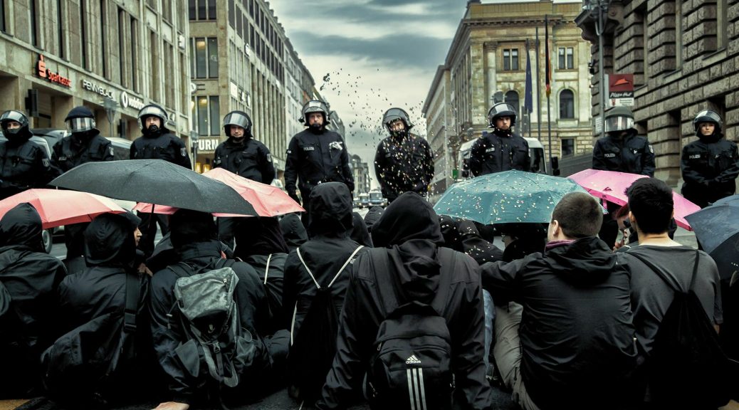 Es gibt immer wieder „aufklärende“ Artikel und Tweets aus dem Umfeld von Schnellroda, die unseren „Linksextremismus“ oder unsere Unterstützung durch diese oder jene vermeintlich super-wichtige Institution „aufdecken“ sollen. Was da dann berichtet wird, ist zwar immer öffentlich einsehbar, aber mit welcher Selbstüberschätzung so getan wird, als hätten die Faschos eine ernsthafte Recherche vorgelegt, ist ganz amüsant. Trotzdem birgt das natürlich auch eine Bedrohungssituation: Die in solchen Berichten namentlich genannten Mitstreiter*innen sollen dem rechtsextremen Mob vorgeworfen werden und auch wenn es oft nicht funktioniert, wissen wir ja inzwischen leider alle, zu was ein digitaler Shitstorm werden kann. Darüber hinaus gab es auf den vergangenen Demonstrationen von uns immer wieder Pöbeleien durch die Faschist*innen. Sie fanden oftmals ihr Akademieprogramm so langweilig, dass sie lieber Stress an unseren Infoständen gemacht und sich sonstwie daneben benommen haben. Insbesondere die „Identitären“ bauen unheimlich gerne Drohkulissen auf und kokettieren mit ihren Gewalttaten, die sie öffentlich dann wieder leugnen.