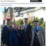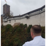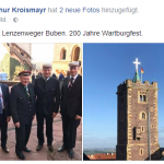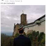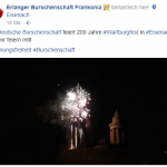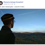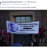 Nicht zuletzt deshalb wurde den Burschenschaften die Nutzung der Wartburg untersagt – was sie allerdings nicht davon abhielt, von ihrem offiziellen Festzelt am Burschenschaftsdenkmal loszuziehen und in einer unangemeldeten Kundgebung zumindest eine Ansprache im Burghof abzuhalten. [2] Die Rede hielt Michael Büge, der wegen seiner Mitgliedschaft in der extrem rechten Berliner Burschenschaft Gothia sein Amt als Staatssekretär verloren hatte. Ende 2016 ist Büge von der CDU in die AfD gewechselt. [3] Corinna Herold, AfD-Abgeordnete im Thüringer Landtag, verlas ein Grußwort. Darin teilte sie ihre „Verbundenheit zur Deutschen Burschenschaft und ihren Idealen“ mit. [4]