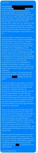 Wir haben Screenshots von einem Teil der Beleidigungen und Drohungen gesammelt und zusammen mit einem Schreiben an seine Arbeitsadresse geschickt. Zusätzlich ging mit einem Fakeprofil eine Nachricht sowohl an ihn als auch an seine Lebensgefährtin, die inhaltsgleich mit dem Brief war. Wichtig war uns, dass der Täter sich des Umfangs des von ihm verursachten Mobs voll bewusst wird und hoffentlich reflektiert, was so in jedem Maße durchschnittliche Personen wie er mit ihren Alltagsrassismus und ihrem Deutschtum bei Menschen anrichten.