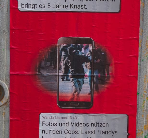 Ja, die Polizei filmt bereits alles mit. Aber durch die Fotos und Videos, die – ob freiwillig oder unfreiwillig – ans Licht kommen, wird den Repressionsbehörden die Arbeit erleichtert. So können sie umfangreiche Ermittlungen anstellen und eure Fotos helfen ihnen dabei andere Aktivist*innen hinter Gitter zu bringen.