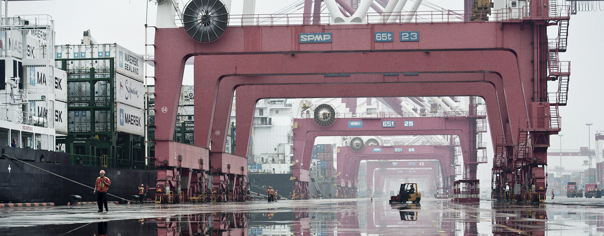 Beside owning more than 600 cargo ships, Maersk company owns and operate 3 triple-E-vessels, each worth USD 190 million, it can load 18 000 containers with products (that’s for example 110 million pairs of shoes), it needs 20 days to come from Shanghai to Spain, each day spending 80 000 liters of fuel, one ship uses twin engines each 43 000 HP (horse power). 80K liters per day is very much although they try to lower damage with comparing it with other cargo transport (air freight 560 gram CO2 per tone per km, E vessels 3 gram CO2), but triple E vessels can load 165 000 tones, x3 grams CO2 per kilometer and there are many kilometers from Shanghai to Britain. The destination ports of this vessels are just several, because not all ports have so big cranes (73m high). Triple-E-Vessels are coming to: Algeciras in Spain, Rotterdam, Bremerhaven, Felixstowe.