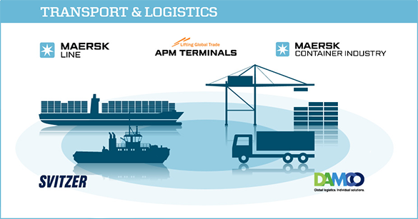Transport and logistic department include several parts of Maersk company: Maersk line, APM terminals in ports, Maersk container industry, Svitzer, Damco. Energy department includes: Maersk oil, Maersk drilling, Maersk Supply Service, Maersk Tankers.