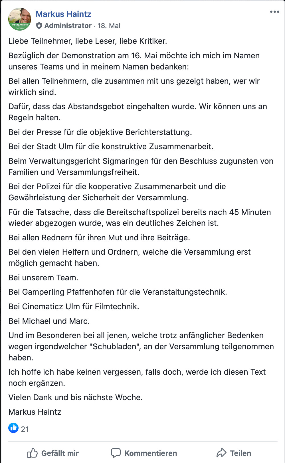 Corona und Grundrechte Versammlungen in Ulm