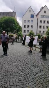 Die Kundgebung zeigte deutlich wie die lokale AfD Ulm mit Markus Mössle zusammenarbeitet, obwohl sie sich von diesem im Gemeinderatswahlkampf 2019 aufgrund seiner rechtsterroristische Vergangenheit scheinbar distanzierte.