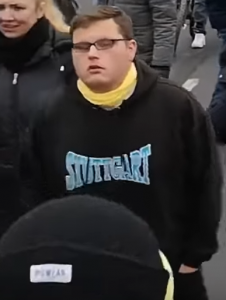 - War am 18.12. teil der IB Schwaben Aktion in Pforzheim, erkennbar am Hoodie, der eine räumlliche nähe zu Stuttgart nahelegt