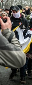 Die Aktivisten der IB aus München Annie Huenecke war zwar nicht im Demonstrationsblock beteiligt, doch Fotos auf den Sozialen Medien legen nahe das sie da war. Eventuell nahm sie nur an der Kundgebung der AfD teil, das gleiche kann für weitere Mitglieder der Identitären Bewegung gelten.