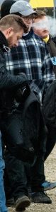 - War am 18.12. teil der IB Schwaben Aktion in Pforzheim, erkennbar an Mütze und Jacke insbesonders der Aufnäher