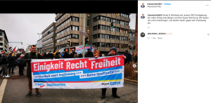 Wo die IB ist, wird die AfD nicht fehlen, das gilt auch in diesem Fall. Der Vorsitzende der AfD Neu-Ulm und der Jungen Alternative Schwaben Franz Schmid inszenierte sich in den sozialen Medien als Teilnehmer der AfD Kundgebung in Nürnberg. Das ist erstmal wenig überraschend, es war ja eine Kundgebung seiner Partei.