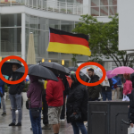 - In 2020 und 2021 konnten wir mehrfach feststellen, dass nach Kundgebungen aus dem Querdenkenspektrum Mitglieder der IB Schwaben von dort zu dem Raum gingen. Sie nahmen dabei teilweise Umwege, vermutlich als Sicherheitsvorkehrung. Gleichzeitig hinterliessen sie aber auch mehrmals eine gut nachvollziehbare Spur an Stickern bis in die Nähe des Raums.