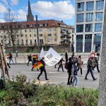- Am 27.03.2021 fuhren Nicolas Brickenstein und Felix Marmor mit einem Auto mit Reutlinger Kennzeichen zu den Räumlichkeiten in der Karlstraße. Nach kurzer Zeit verließen sie mit einem Banner die Räumlichkeiten und gingen zu Fuß zu einer bundesweit angekündigten Demonstration aus dem Querdenken-Spektrum von Klardenken Schwaben. Dort setzten sie sich mit einem weiteren Identitären Aktivisten mit einem Frontbanner und IB-Schlauchschalen in Szene.