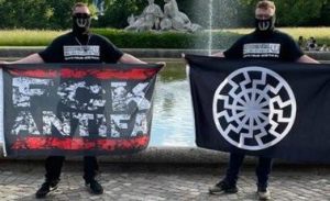 Es handelt sich um Alex Hilbig und Arthur Beidin. Beide treten öffentlich auf als Mitglieder der neonzaistischen Kleinstpartei Neue Sträke Partei (NSP) auf und geben an Teil deren Ableger in Stuttgart zu sein. Alex Hilbig trug die schwarze Sonnen Fahne – Arthur das Banner mit einem neonazistischen Spruch zum angeblichen White Genozid.