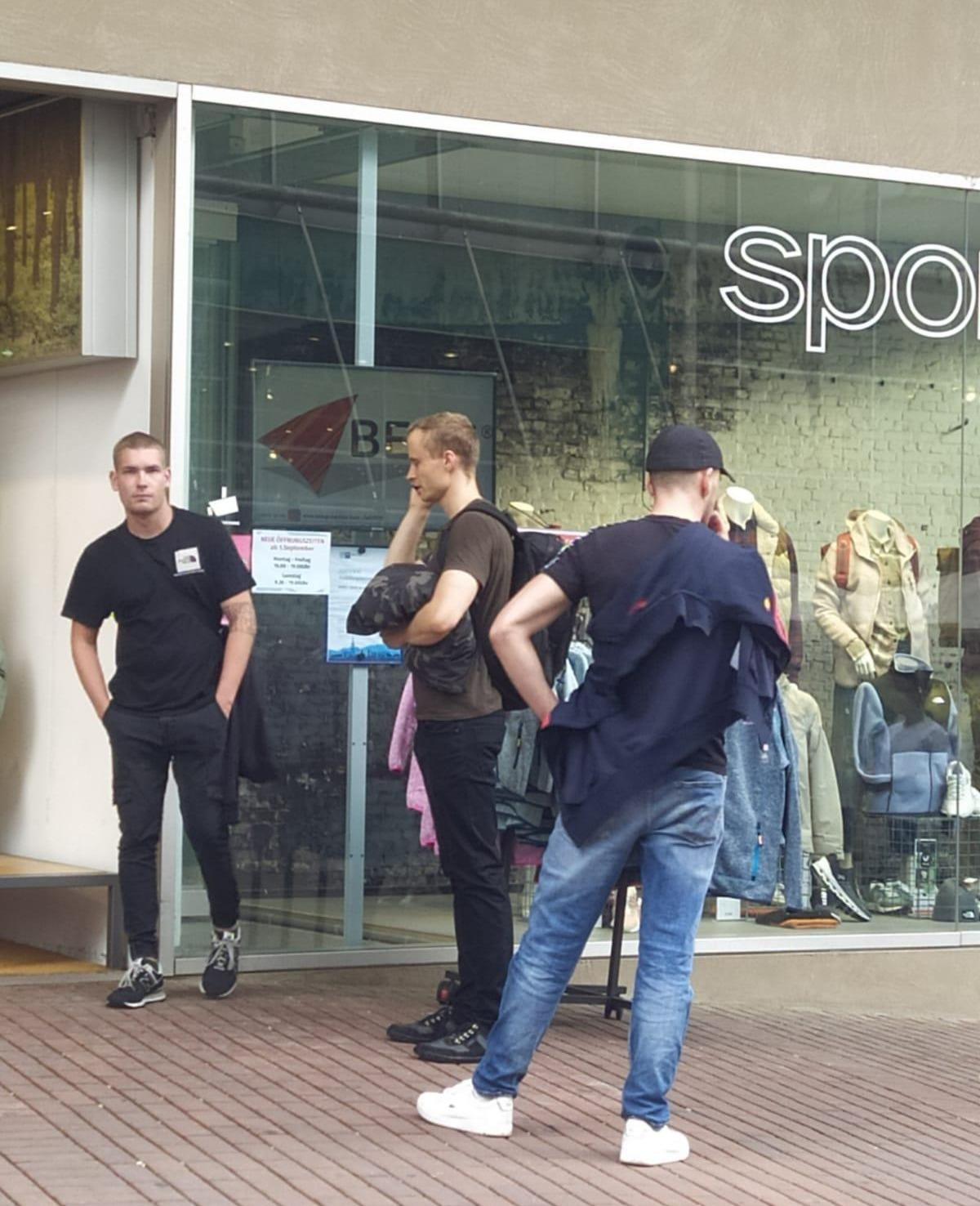 Nicolas Brickenstein (in der Mitte) mit zwei anderen Personen vor dem Sportsohn kurz vor dem Übergriff