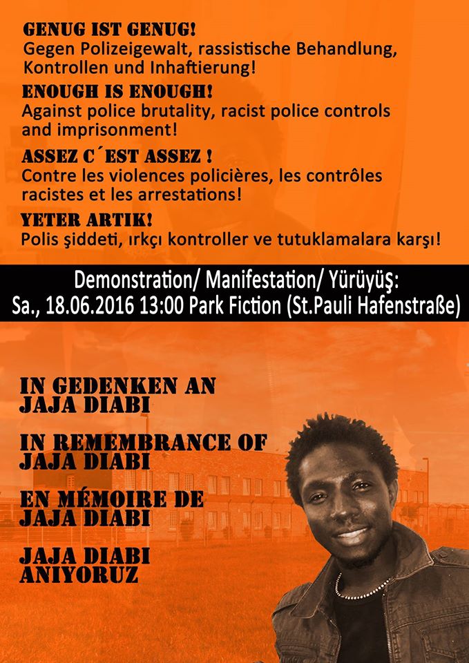 Im Juni 2016 gab es eine sehr starke Demonstration, die von der Initiative in Gedenken an Jaja Diabi (zu dem Zeitpunkt noch ein Vernetzungstreffen).