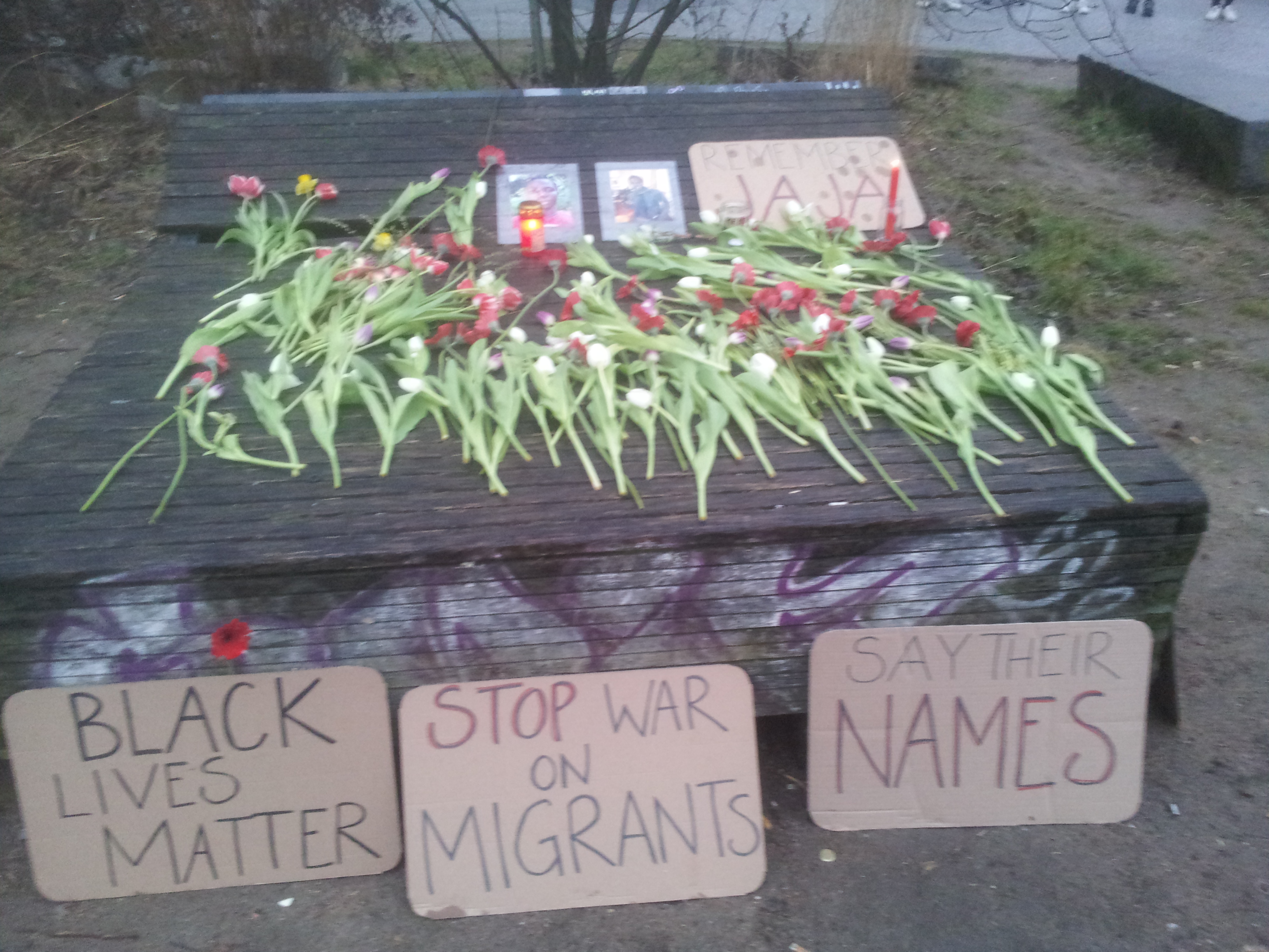 On the 19th of February 2017 we remembered and mourned Jaja Diabi with around 400 people in a manifestation. This was the first anniversary of his death.