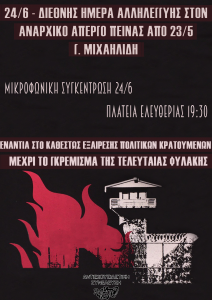 Καλούμε στις 24/6, στην διεθνή ημέρα αλληλεγγύης στον αναρχικό απεργό πείνας από 23/5 Γ. Μιχαηλίδη, μικροφωνική συγκέντρωση στην Πλατεία Ελευθερίας στην Λαμία στις 19:30