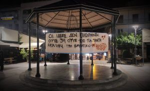 Πανό αλληλεγγύης στον αγώνα κατά του ‘εξευγενισμού’ των Εξαρχείων