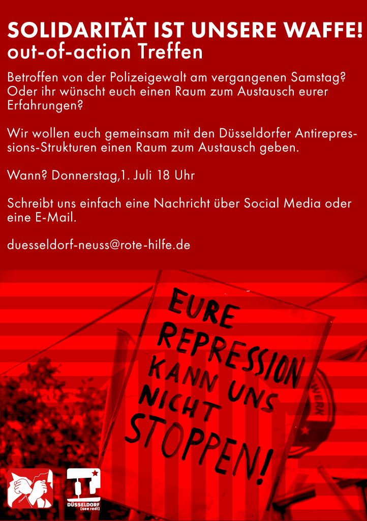Wir teilen den Aufruf der Rechtshilfegruppe Düsseldorf. Meldet euch bei ihnen (und natürlich auch bei uns)!