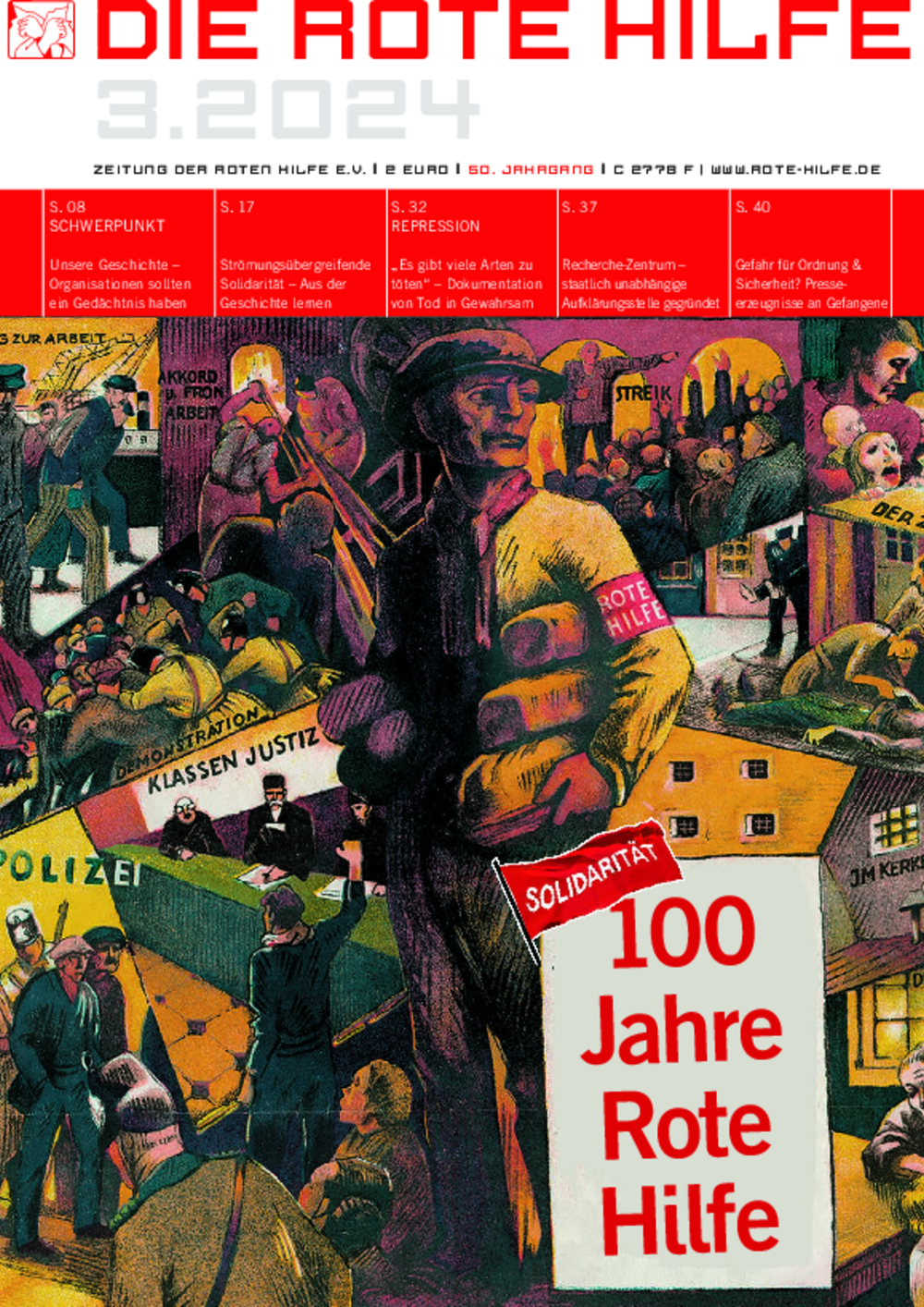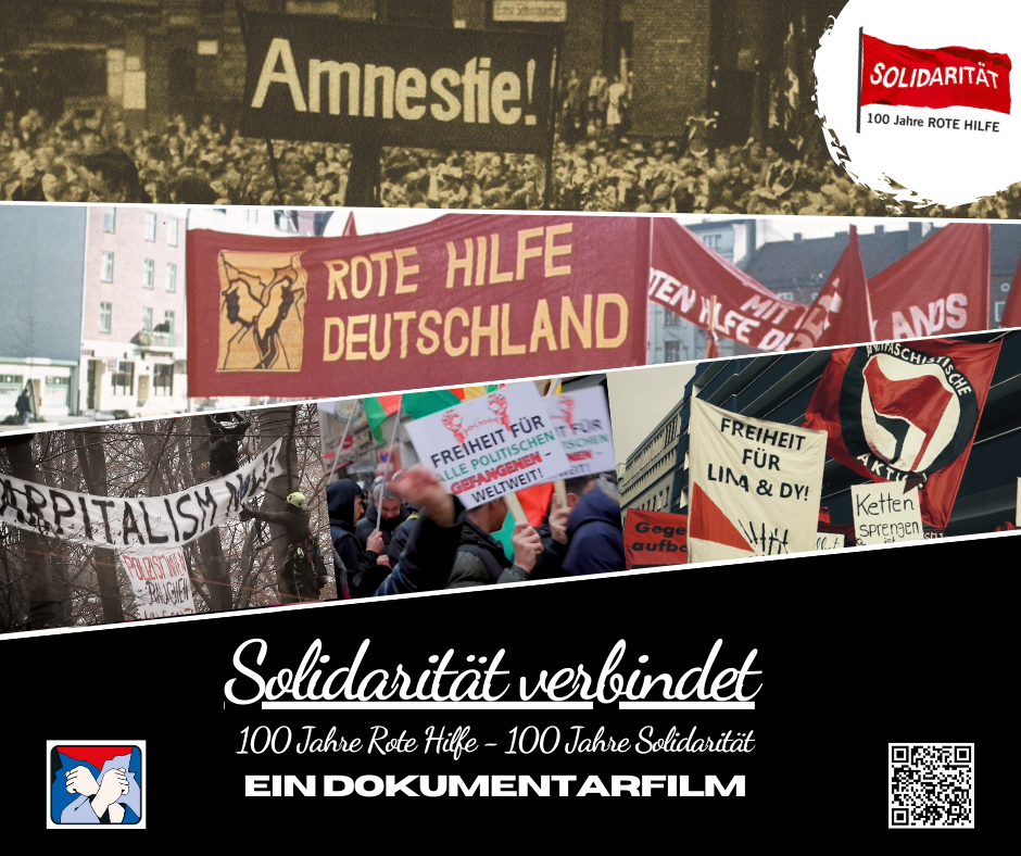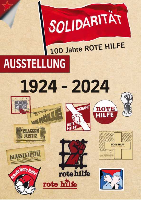 Am 01.10.2024 feiert die Rote Hilfe 100. Geburtstag. Wir nehmen dies zum Anlass, eine Ausstellung über die Geschichte der Roten Hilfe im ehemaligen Polizeigefängnis Klapperfeld in Frankfurt zu zeigen. Zur Ausstellungseröffnung am 05.10.2024 gibt es einen kleinen Sektempfang und um 17:00 Uhr eine öffentliche Führung durch das gesamte Haus.