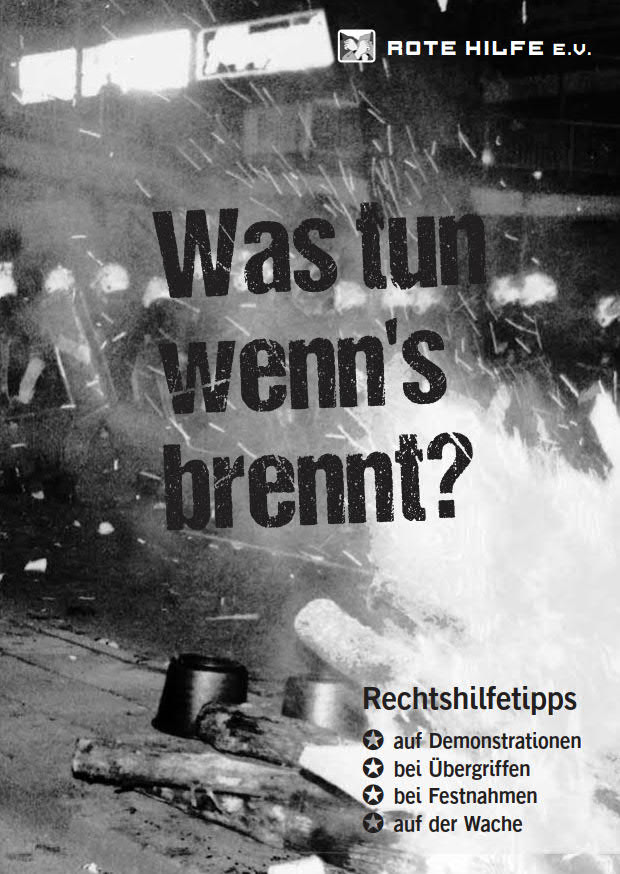 Die umfangreiche Broschüre der Roten Hilfe „Aussageverweigerung“ ist überarbeitet erschienen und kann in der Rubrik „Broschüren & Flyer“ herunter geladen werden. Direkter Link.