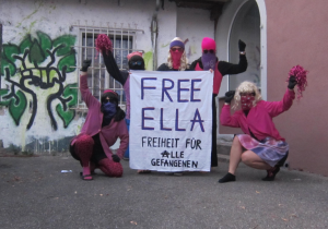 Im Juni 2021 wurde Ella wegen „gefährlicher Körperverletzung“, „Widerstand“ und „tätlichem Angriff in erster Instanz zu 2 Jahren und drei Monaten Haft verurteilt. Mit dem Urteil sollte ein abschreckendes Exempel statuiert werden, um die gesamte Klimabewegung einzuschüchtern. Daher gilt es umso mehr solidarisch zu sein: mit Briefen und Postkarten an Ella, bei den regelmäßigen Kundgebungen vor der JVA und anderswo und bei der Begleitung des weiteren Verfahren ab Januar 2022.